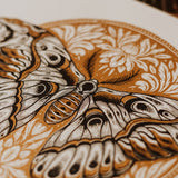 The Atlas Moth is one of the largest moths on the planet, it also has a pattern on the tips of its wings that resemble the head of a snake, which is a form of defence against predators. We took this natural idea and decided to create a more exaggerated illustration of it, the idea stood out to us as soon as we discovered it.