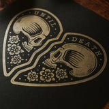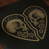 We decided to create this art print after the great response to our 'Until Death' pin badge set. We wanted to create something that acts as a symbol and reminder that even when you're apart, you are still together - ‘Until Death’.