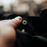 - Hidden popper closure for extra security.