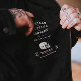 The 'Hopeless' Jacket features a traditional print on the chest, back, and internal pocket - printed by hand using water-based inks. With its heavy-weight 470 GSM canvas construction, this jacket is not only warm and durable but it's also built to last and age over time. This is a brand new product for us and is one we're excited about.