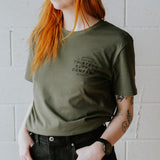 Please note: Due to the hand screen printed nature of these products, each item may have unique differences. However, all products have been inspected and passed a quality check. This product is using a new Khaki t-shirt which is different to the previous colour we used to print for it.