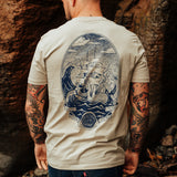 Inspired by the nautical theme, we created the 'Weather The Storm' design by putting our spin on a large Kraken attempting to sink a ship.