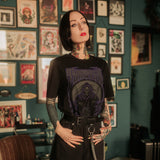 The 'Harvester Of Death' T-shirt features a full two-colour front print - it's a colour combination we've never tried before but love how it turned out. The purple and black on black mix looks great together, and it's a darker edge, which we like leaning into around Halloween.